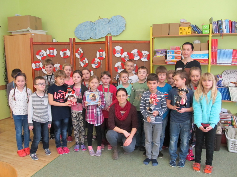 Prvňáčci z téhle školy měli na podzim pasování na čtenáře v pirátském duchu a celý podzim četli Piráta Šampaňského. Navíc ve třídě mají úžasnou pirátskou výzdobu. Neodolala jsem a musela se s nimi alepsoň vyfotit.