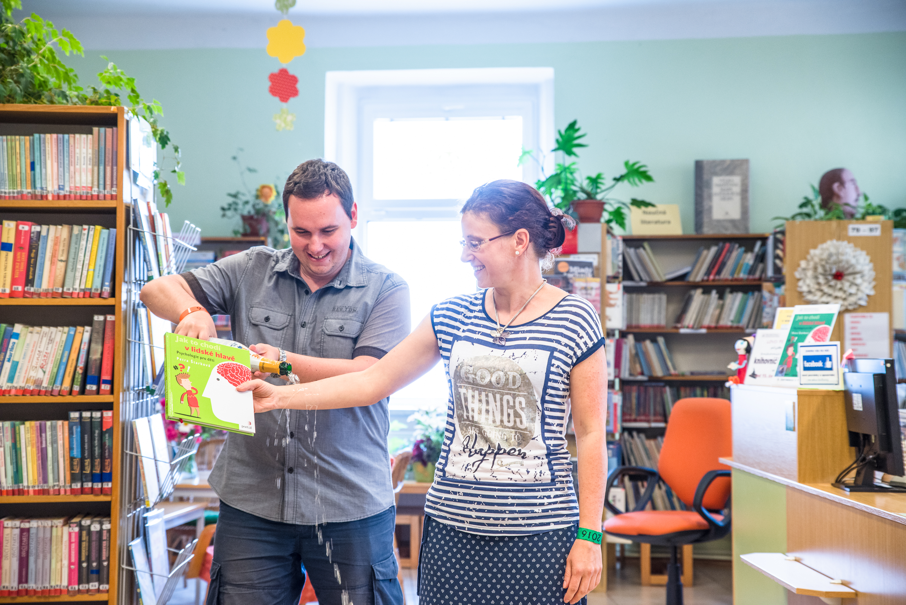 Fotky ze křtu knihy Jak to chodí v lidské hlavě v Knihovně Ignáta Herrmanna v Chotěboři